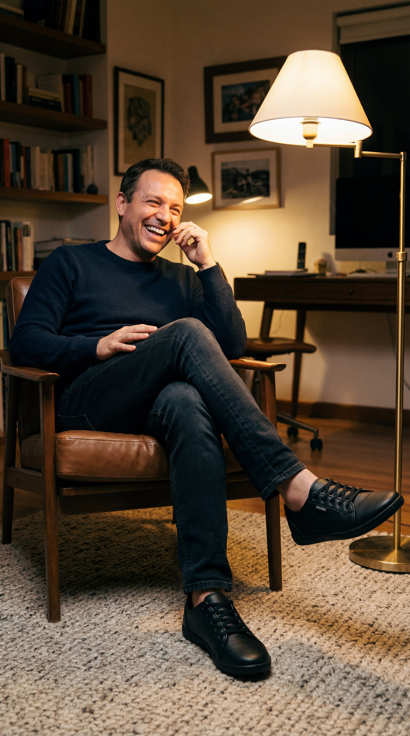 Tired of coming home with aching, cramped feet? Traditional shoes don’t just fail to provide relief, their narrow design actually makes things worse by squeezing your toes together and restricting blood flow.